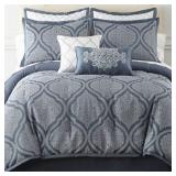 Royal Velvet Mona Bedding. Elegant sophistication is the essence of the lovely Mona Bedding. A striking blue and white ogee pattern creates an updated feel. Queen. Retail Packaging. MSRP $270.00. |