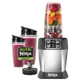 Nutri Ninja® Blender with Auto iQ™ Technology BL482. The Nutri Ninja® with Auto-iQ™ takes the guesswork out of drink making! Auto-iQ Technology features intelligent programs that combine unique, timed pulsing, blending and pausing patterns that do the work for you! Combined with Nutri Ninja® Pro Extractor Blades™, Auto-iQ™ breaks down whole fruits, vegetables, ice and seeds for powerful nutrient & vitamin extraction. Small & Regular Nutri Ninja® Cups with Sip & Seal™ Lids allow you to make nutrient-rich Super Juices to take on-the-go! All parts are BPA free and dishwasher safe. Retail Packaging. MSRP $150.00. |