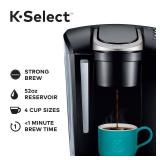 Keurig® K-Select™ Coffee Maker. The newest addition to the Keurig® single serve coffee maker family, the Keurig® K-Select™ combines sleek design and simple button controls to help you brew your perfect cup every time. For coffee lovers who enjoy a bold brew, the Strong Brew button increases coffee's strength and intensity and the 52-ounce water reservoir means you can brew 5 cups before refilling. Four cup sizes allow you to make 6, 8, 10 or 12 ounces of your favorite beverages in under a minute, while Quiet Brew Technology™ minimizes noise during use. Just pop in a pod and select your brew size to enjoy a perfect brew every time. Retail Packaging. MSRP $150.00. |