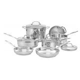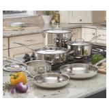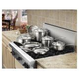 Cuisinart® 11-pc. Stainless Steel Cookware Set. A great go-to assortment of cookware must-have. This essential set makes it easy to prepare multiple dishes at once. It includes a terrific, large stockpot for making hearty pastas, and is also equipped with a steamer insert for steaming vegetables. Retail Packaging. MSRP $250.00. |