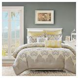 Madison Park Noelle Bedding. Decorate your bedroom with Madison Park Noelle Cotton Bedding. This contemporary collection features an updated paisley pattern inside an ogee design for a unique look. The soft grey works as the perfect backdrop for the dusty yellow and charcoal grey printed on this 220-thread count cotton sateen fabrication. Twin. Retail Packaging. MSRP $280.00. |