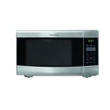 Frigidaire FFCM1134LS 1100 Watt Countertop Microwave. 1.1 cubic foot in Stainless Steel. Quick-start options make popcorn an easy during-the-commercials snack. One-touch cook time settings and auto reheat functions warm up a cup of coffee with little effort. Defrosting the meat that didn’t make it out of the freezer on time is as simple as the touch of a button. From tasty pizza rolls to mealtime standards, the 1,100 watts and 10 power levels cut prep time and get food on the table quicker. The glass-turntable aids in even heating but can also be turned off if desired. A control lock feature is also present, a safety element preventing unsupervised or accidental use for kid-friendly households. Clock and timer helps you keep track of cook times. Interior light illuminates the contents of the microwave for increased visibility. Glass turntable plate provides a level cooking surface that cooks food evenly and maximizes usable capacity. Retail Packaging. MSRP $129.00. |