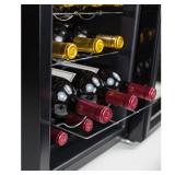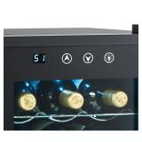 Nostalgia 12-Bottle Electric Wine Cooler. This sleek, modern appliance keeps your bottles cool and on display, yet is discreet enough in look and in sound to be a classic addition to any interior. The efficient thermoelectric wine cooler chills wine without a compressor for low noise and no vibration to disturb bottle-sediment. 12 Bottle capacity. Single zone cooling. Three slide-out chrome shelves. Double-pane door with integrated handle. Blue interior lighting with on/off switch. Blue LED display with touch keys. Adjustable thermostat. Eco-friendly; no refrigerant needed. Retail Packaging. MSRP $129.99. |