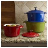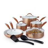 Cooks Ceramic 12-pc. Cookware Set. Gorgeous red translucent finish paired with a very durable and healthy ceramic interior nonstick finish make this a perfect cookware set. PFOA-free and PTFE-free non-stick ceramic coating. Aluminum guarantees optimum heat distribution for fast and even cooking. Dual riveted silicone handles provide a safe, cool handle. Tempered glass lids with steam vent and silicone grip knob. Retail Packaging. MSRP $200.00. |
