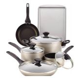 Cooks 13-pc. Nonstick Cookware Set. Heat and shatter resistant tempered glass lids allow easy monitoring of cooking progress. Dishwasher-safe. Compatible with gas electric and ceramic glass cooktops.Retail Packaging. MSRP $39.00. |