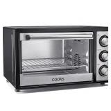 Cooks 4-Slice Toaster Oven. Toast up to four slices of bread or bake a 9" pizza in the Cooks 4-Slice Toaster Oven. Featuring a 1000-watt quartz-heating element, the toaster warms quickly, heats evenly, and provides tremendous temperature accuracy. Select from various cooking functions—bake, broil, toast, and warm—and cook multiple items simultaneously on the two racks. A power light and indicator bell provide added safety. Retail Packaging. MSRP $60.00. |