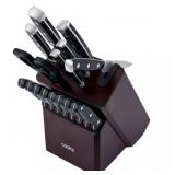 J.A. Henckels International Forged Synergy 16-piece Block Set. Forged Synergy knives allow you to cut with confidence. Fabricated from high-quality German stainless steel, the fine-edge blade produces precision cuts. Honed for long-lasting sharpness, prep work is painless with this professional, satin-finished blade. The forged bolster construction seamlessly transitions from blade to handle for durability and balance. Designed for comfort and style, the ergonomic double-rivet handle features a sleek, stainless steel backing. Easy to use, these dishwasher-safe knives are also easy to care for. Retail Packaging. MSRP $465.00.(49) |
