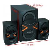 beFree 2.1 Channel Surround Sound Bluetooth Speaker System. Enjoy the ultimate home theater experience with with BeFree Sounds 2.1 Channel Surround Sound Bluetooth Speaker System. This speaker system is sophistically designed, featuring a sleek look and smooth sound. With Bluetooth, USB, SD and FM radio capability, the system offers the best possible listening options for your enjoyment. Retail Packaging. MSRP $189.99. |
