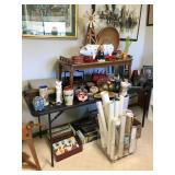 Kitchen/Dining: Pots, pans, silverware, dinnerware, crystal, serving pieces, china, serving bowls, pitchers and much more. Misc: Loomcraft Floor Loom Floor Loom smaller Antique Metal Bell Nautical Items Ceramic Planters Whale Weathervanes-2 Vintage Electronics Board Games