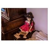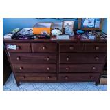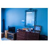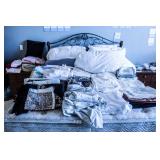 Beautiful Queen Bedroom Set by Drexel Including Queen Bed, Tall Boy Dresser, Low Dresser, and Twin Nightstands, Needlepoint Chair, Floor Lamp, Wicker Hampers, Chenille Vintage Bedspread, Embroidered Middle Eastern Textiles, High End Sundries, Ladies Clothing and Shoes, Needlepoint Embroidery Rack, Home Decor, Costume Jewelry, and More.