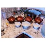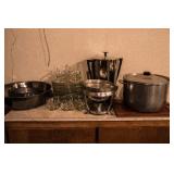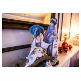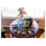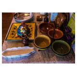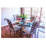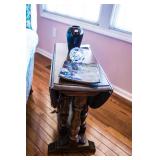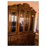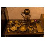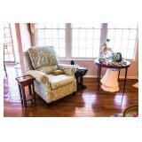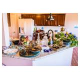 Thomasville China Hutch, Lattice Top Dining Table with Leafs and Chairs, Haviland China Set, Cream Fainting Couch, Damascus Hammered Brass Table, Upholstered Modern Recliner Chair, Upholstered Wingback Chair, Gateleg Side Table, Folding Card Tables, Vintage Console Bar, Lane Vintage Sofa, Bookshelves, NordicTrack Ski Machine, Exercise Bike, Marble Top Console Table from Gormans, Brass Tchotchkes, Tile Top Side Table, Polish Pottery, Stoneware, Lenox China, Silverware Flatware, Gorgeous Glass Top and Metal Dining Table and Chairs, Patio Table and Chairs from Jimmys Rustics, Pyrex, Revereware Pots and Pans, Fitz and Floyd Platter, Brass Incense Holders, Lladro Geisha Figurine, Bohemian Glass Decanter and Glasses, Dishes, Plates, Stemware, Home Decor, Lamps by Stiffel, Antique Bibles, Vintage Overseas Souvenirs and More.