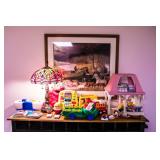 Stickley Cabinet and Shelves, Hooker Accent Table, Leather Sectional, Imitation Tiffany Lamps, Sleeper Sofa, Small Kitchen Appliances Including Cuisinart, Kitchenaid and More. Powell Indoor Bench, China Cabinets, Artwork, Madame Alexander Doll, Barbies, Weeble Wobbles, Vintage GI Joe, Paisley Dish Set, Playskool Little People, Framed, Home Decor, and more. |