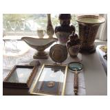 An "english-french-chinoisserie" blend of home furnishings and accessories. Nine rooms to shop with much to offer!! · Chandeliers · Dining Room table w/ 6 chairs (cane back) · Full size bed · Night stands · Linen · China · Glass · Art · Decorative pieces · Sofa · Chest of drawers · Clothing · Dresser · Curio cabinet · Sectional sofa · Hostess cabinet · Victorian lamp table · Secretary · Picture frames · Counter stools · Throw pillows · Flatware · Wall mirrors · End tables Plenty of things to find when you shop Pieces of Time! **Recycle**Repurpose**Re-use |