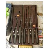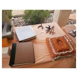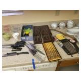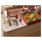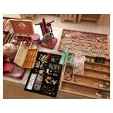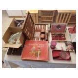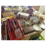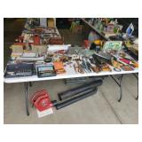 +Pair of Epicure Model 10 Vintage Speakers+ +2 Original Jim Eder Woodcut Prints +Albums+ +Cutco Knives+ +Caleca Italy Hand Painted Frutta Stoneware - Set For 6 +Noritake China Japan "Lilly Bell" Pattern - 90 Piece Set For 12 +Heywood Wakefield French Country Dining Room Table & 6 Chairs w/ 2 Leaves & Hard Protective Pad & Heywood Wakefield China Hutch +2 Flat Screen TVs+ +Electronics+ +Tools, Heavy Duty Solid Wood Work Bench (72" l x 31" w x 34" h) & Garage Shelves +Degrazia Items +Humel Collector Plates +Vintage The Little American Maid Tea Set by The Akro Agate Co. +Misc. Kitchenware, Small Kitchen Appliances, Dishes, Pots & Pans, Cast Iron +MCM Yellow & Chrome Step Stool +2 Harrison Begay Hand Signed Silk Screen Prints +Womens & Mens Clothes +Bedroom Set +Large Area Rug & Bathroom Rugs +Native American Rugs +Avon Dual Massage Couch w/Hidden Table (85" l x 35" w) +Recliners +8 Drawer Dresser & 2 Other Dressers +Vintage Sitting Chair +MCM Lamps +Decorative Dinner Bells +Vintage Tell City Floor Lamp +Express Golf Caddy +Potted Flowers +Vintage Birdbath +Planting Table +Patio Table w/ 4 Chairs & Cushions +Gardening Supplies +Misc. Craft Supplies +Hoover Vacuum Cleaners & Hoover Shampoo Cleaners +Kitchen Bar Stools