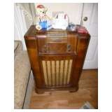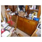 Washer, dryer, SS Fridge, 250 gallon propane tank, overstuffed sofa and loveseat, 1930′s wing chair, round oak table with 4 pressback chairs, mahogany table with 5 chairs, waterfall dresser, great mid century modern china/buffet, 1930′s walnut china cabinet, leather recliner, King and Queen Mission style beds, 1940′s floor radio, floor torcherie, entertainment center, several TV’s, fishing stuff, tools, misc. outdoor, large tomato cages, lots of small itemns (kitchen, house, and shed), lots of John Wayne, DVD’s, turn of the century quarter sawn back bar and much, much more.