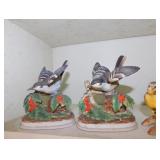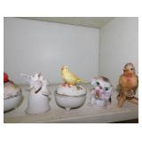 Shelf Lot Porcelain Bird Figurines & Trinket Holders
