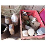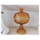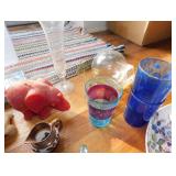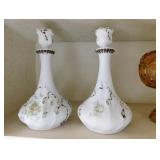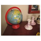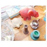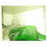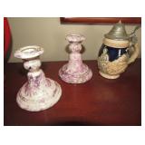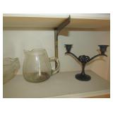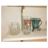 Lot Painted Glass Decanters / Candle Holders Amber Candy Dish & Porcelain Figurine