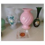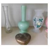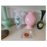 Lot of Ceramic & Glass Vases, Ashtray, and Trinket Jewelry Holder