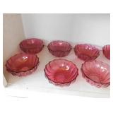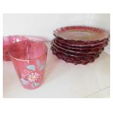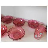 Lot Cranberry Glass Bowls, Plates, and Hand painted Glass Cup