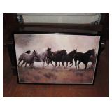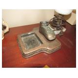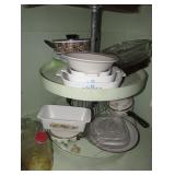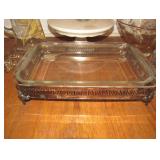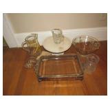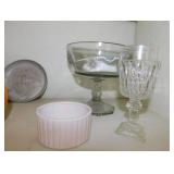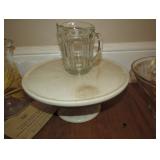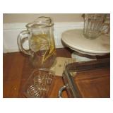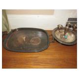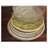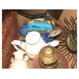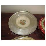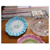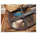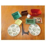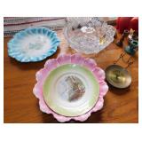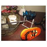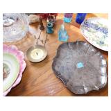 Lot Glass Pictures, Silver Plated Tray w/ Dish, Ceramic Cake Pedestal, Baskets, +