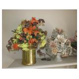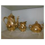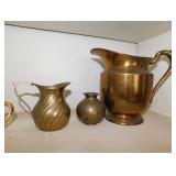 Lot Brass Pitcher, Creamer, and Small Vase & Lot of Gold Tone Ceramic Coffee Set