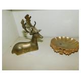 Lot 5 pieces of Brass Trays, Bowls, and Deer