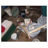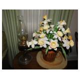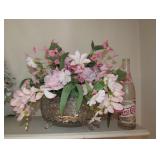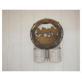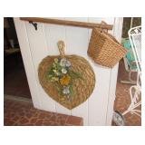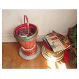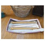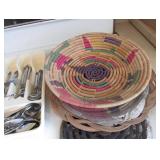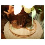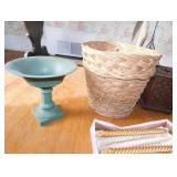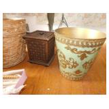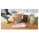 Lot Baskets Candle Sticks and Vintage Wastebasket