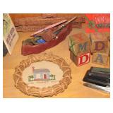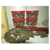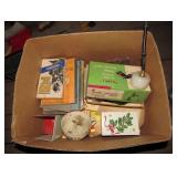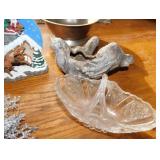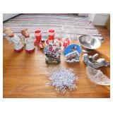 Lot Vintage Christmas Decorations, Glass & Tin Bowl