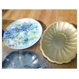 Lot Vintage China Plates 24k Plated Platter Candles Glass Vases Brass Pillar Holder +