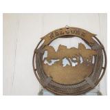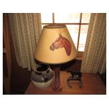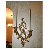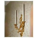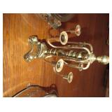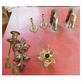 Lot Brass Candle Holders, Wall Sconce, and Horse Head Bookends