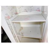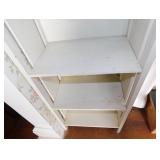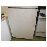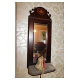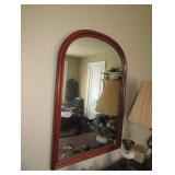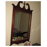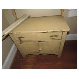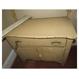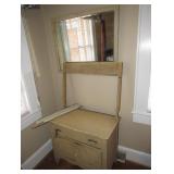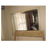30" x 17" x 28" Table has 1 drawer, and 1 Cabinet. Off-White Chippy Paint. Includes original mirror frame pieces. Wall mirror included 32" x 27". 192