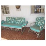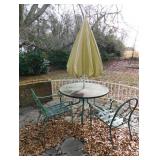 Aluminum Patio Set Glass Top Table 2 Chairs & Umbrella