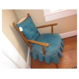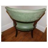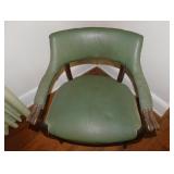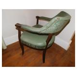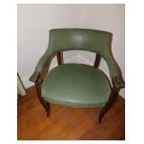 Vintage Green Vinyl Covered Wood Leg Armchair Occasional Chair