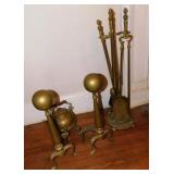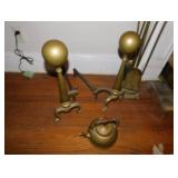 Brass Fireplace Poker Set, Lions Foot Screen, Andirons, & Coffee Kettle
