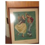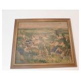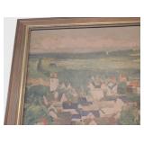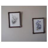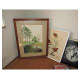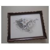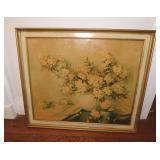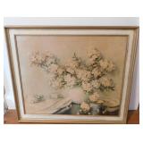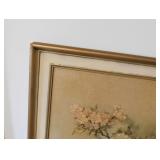 Large Vintage Floral Print Framed, Signed "Carrier"
