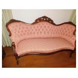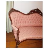 Antique Ornate Wood Carved Top Parlor Couch Settee Victorian Style