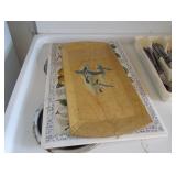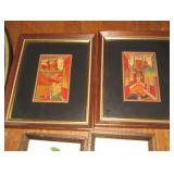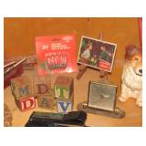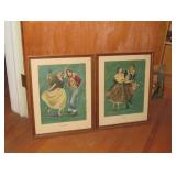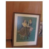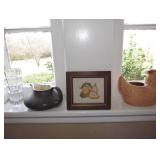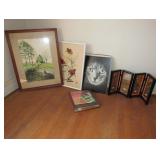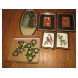 Lot Vintage Framed Pictures & Ceramic Christmas Tree Napkin Holders