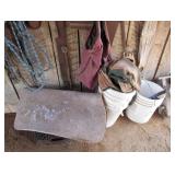Vintage Metal Birdcage, Dustpan, and Part of Vacuum