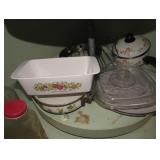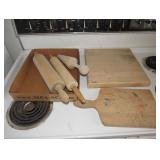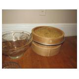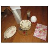 Lot of Royal Ivory China Bowls & Covered Dish, Glass Platter, Cutting Boards, & Straw Holder