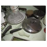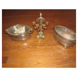 Lot Chaffing Dishes 1 with Glass Dish and Silver tone Candelabra