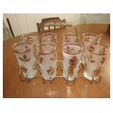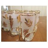 Vintage Libby Glass Gold Tone Trim Glasses & Carrier