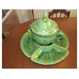 Marcia of Calif USA Pottery Soup Bowl Set w/ Matching Trays