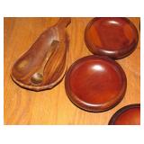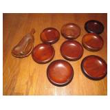 Lot Wood Salad Bowls & Monkey Redwood Pear Shaped Wood Dish & Spoon