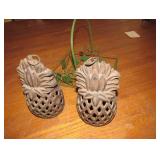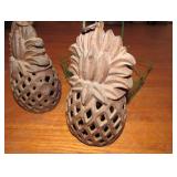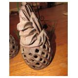 Lot of Metal Outdoor Pineapple Shaped Candle Lanterns & Vine Basket