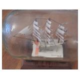 Ship in a Glass Gallon Jar Bottle Decoration with Wooden Stand