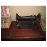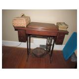 Vintage Singer Sewing Machine Table #AF649029 & Sewing Supplies