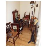 HIGHLIGHT OF SOME OF THE TREASURES INCLUDE: 1. Small carousel horse, partially repainted. Bought as is in Houston, TX, in 1981. 2. China cabinet. Made in the 1970's by Mr. Zaring of Zaring Antiques, Denver, PA. Period appropriate glass (may be old glass). Hinges and other hardware by Ball and Ball Hardware Reproductions in Denver, PA in Amish country. 3. American Flyer Wagon. 1984. 4. Painted metal wall sculptures. Haiti. 5. Tall goose neck wood paddles/oven peel, probably walnut. PA Dutch, made around Lancaster County, PA in the 1970's. 6. Brown chest with stenciled panels. Bought in Adamstown, PA in the 1970's. 7. Glass front cabinets in room over the garage. Came from a family owned store in Lewistown, Montana, used in the store for display until it closed in the 1980's. The base is next to them. The glass fronts close but are not well attached. 8. Wood desk on first floor. Used by an African American student from Charleston at Harvard University, according to his brother. 9. Black metal bed frame. The pieces to make it a canopy bed are in the attic behind the bedroom. 10. Cast iron fry pans hanging on the rack under the stove. 11. Corn bread pans. 12. Peruvian, Guatemalan, and El Salvadoran items bought on site between 1965 and 1969. 13. Oak icebox with original Good Housekeeping Seal of Approval and original funnel and other pieces to drain the water as the ice melted. Damage to top surface. Icebox came from the Dolliver family, Bar Harbor, ME. The Dolliver dump is where many believe that the disastrous fire of 1947 began; the fire burned 17,000 acres and destroyed over 200 houses in Bar Harbor, including many of the large mansions, changing the economy of the area from serving the wealthy to a tourist economy today. 14. Ogee tall clock in closet. Original state. Bought in Adamstown or Denver, PA 15. Several other antique clocks, mostly bought in Adamstown and Denver, PA 16. Two wood side chairs. Belonged to a landman who acquired subsurface mineral rights for oil companies in Houston, TX. 17. Large Scotch pine Christmas tree, 9' tall. In excellent condition, always stored in an air-conditioned closet inside the house. It was the display tree at Dillards. 18. Long walnut shelf, hanging from rafter in attic behind the bedroom. Handcrafted in 1979. 19. Twin bed headboard with bookshelf, built 1958 by a family member in Abington, PA. 20. Nikon D60 camera and lenses. Well cared for, moderate use. Has not been used in 7-8 years. Original boxes. 21. Antique doll bed with homemade mattress cover. Bought 1985 in Adamstown or Denver, PA 22. Goose neck kitchen towel double bar. Adamstown or Denver, PA, bought in 1974 or 1975 23. White hanging cabinet with glass doors. Removed from 1850's row house in Philadelphia, PA. 24. Ceramic angels wall sculptures. Bought Houston, TX in 1980's. Sunlight will cause fading. 25. Oak oval table with 2 leaves (they don't match the table). 26. Maple drop leaf table near front door. Bought in 27.Antique PA Dutch lightning rod and weathervane with glass ball, used to protect homes and barns from lightning strikes that caused fires. Bought in Adamstown, PA in 1974. From Wikipedia: "The main purpose of these balls, however, is to provide evidence of a lightning strike by shattering or falling off. If after a storm a ball is discovered missing or broken, the property owner should then check the building, rod, and grounding wire for damage." 28. Iver Johnston bicycle. Bought 1937 in or around Southampton, PA. The back fender has holes for string to prevent a woman's skirts from getting caught in the wheel. Original condition. Well loved. 29. Mexican cargo tricycle. Bought new in 1995 in Monterrey, Mexico. These tricycles are used as local taxis and vendors in the Yucatan peninsula. 30. Gitane road bike, bought used in 1971 and restored in the 1990's. 31. Jamis women's comfort bike. $700+ new in 200? Front and rear shock absorbers. 32. Jamis men's bike with original instruction book. 33. Upper case stained glass window in closet in middle 2nd floor bedroom. Family piece from late 1800's or early 1900's home in Houston, TX. 34. Early American hooded cradle. Bought in eastern PA in 1984. Has a homemade foam mattress and mattress cover. 35. Tall pine cabinet with hand carved doors. Bought in Charleston, SC in 2003. 36. Dark wood ogee mirror. Bought in Adamstown or Denver, PA in the 1970's. 37. 3 19th century primitive plank bottom chairs in original finish. Bought in the 1970's in eastern PA. 38. Primitive rocking horse on stand with horse hair tail and mane.. In original condition. 18th or 19th century. Bought in eastern PA, likely in Adamstown or Denver, in the 1970's. 39. Andirons in fireplace. Balls from top were removed and saved. They are next to the andirons. Acquired in Bar Harbor, ME, from a scientist's house that burned down in the 1970's. 40. Lionel trains, bought in PA in 1945. Original condition, stored and not used for most of the years since then. 41. Primitive farmhouse drop-leaf table in room over garage. Bought in eastern PA in the 1980's. 42. Walnut drop-leaf table in dining room. Bought in eastern PA in the 1980's. 43. Tailor's mirror in front hall. I'm guessing early 1900's. Came from an 1850's house in Philadelphia but that wasn't its origin. 44. Ladder back chair with rush seat. Early American, bought in eastern PA. 45. A mechanical bank "Milking Cow" by JE Stevens Co. Victorian. It was valued at $5000 in 2007. 46. The chest that looks something like a coffin is Mexican with original inscription on the inside of the lid. Bought in the Texas Hill Country in the 1980's. 47. The hooded cradle is of Pennsylvania origin, 19th century. Bought in eastern PA for our daughter. 48. Pine cobbler's bench with dividers and leather insert, early 19th century. 49. Large tailor's mirror is Victorian. 50. The ogee clock is by New Haven Clock Co, circa 1840. 51. The duck decoy is signed Holly in pencil. 52. The Pillar and Scroll clock is Eli Terry and was valued at