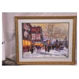 Framed print "Winter Evening" by Andre D'Avignon; 274-205 - Street scene with ornate frame - 26x22
