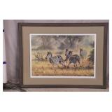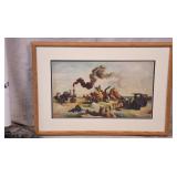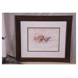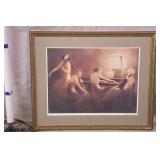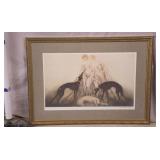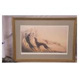 Framed print "Coursing III" by Louis Icart; 274-302 - ornate gold frame - 32.5x23.5