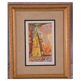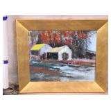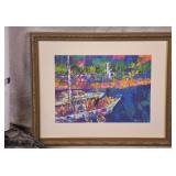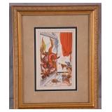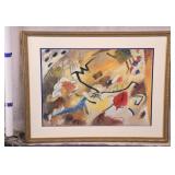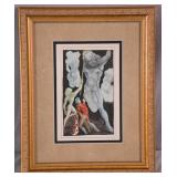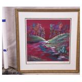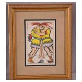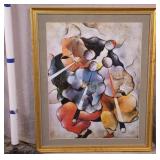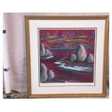 Large framed print by David Schluss; 274-244 - gold frame - artist paints with his hands, using no brush - 28.5x34.5